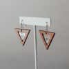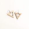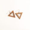 A twist on the Triangular Duo, this striking wooden and acrylic combo is for those who enjoy just a little more length and a lot more movement to their earring style. It is suspended from a french hook (compared to the Triangular Duo stud version) to allow for a different style of hanging and comfort that some prefer.