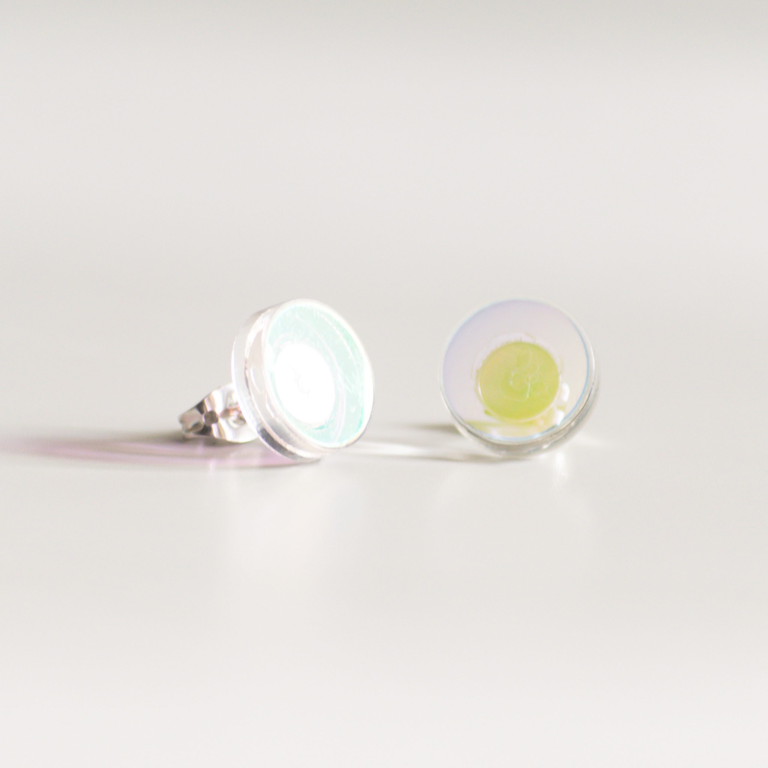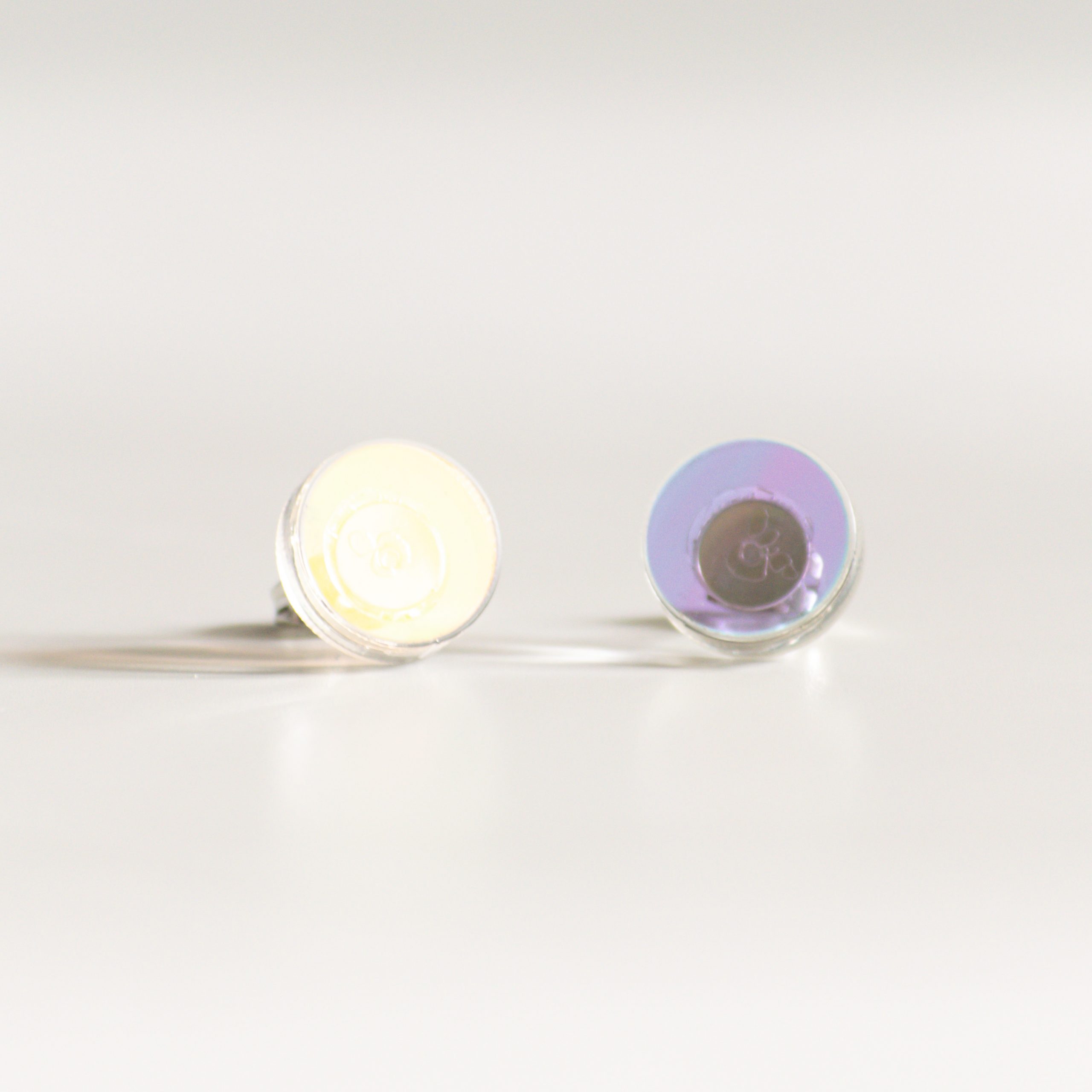 The radiant nature of these small circles emit a powerful presence that captures the colors around them and bounces a range of pinks, purples, blues, and greens all around the room.