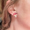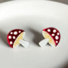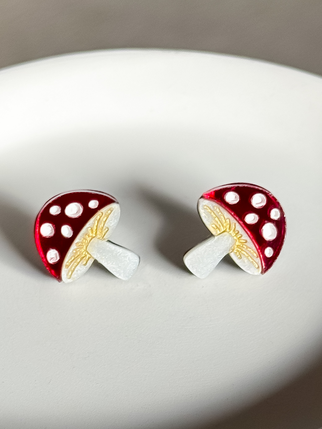 These little mushies are 3/4 inch made of mirrored red and pearlized cream acrylic with handpainted details.